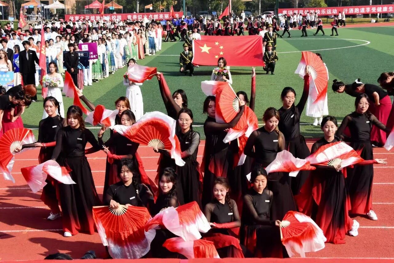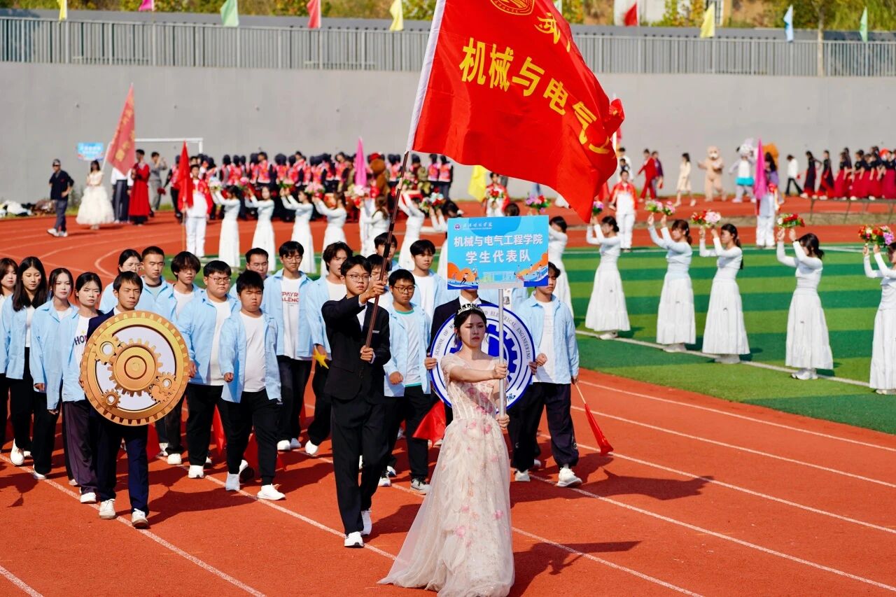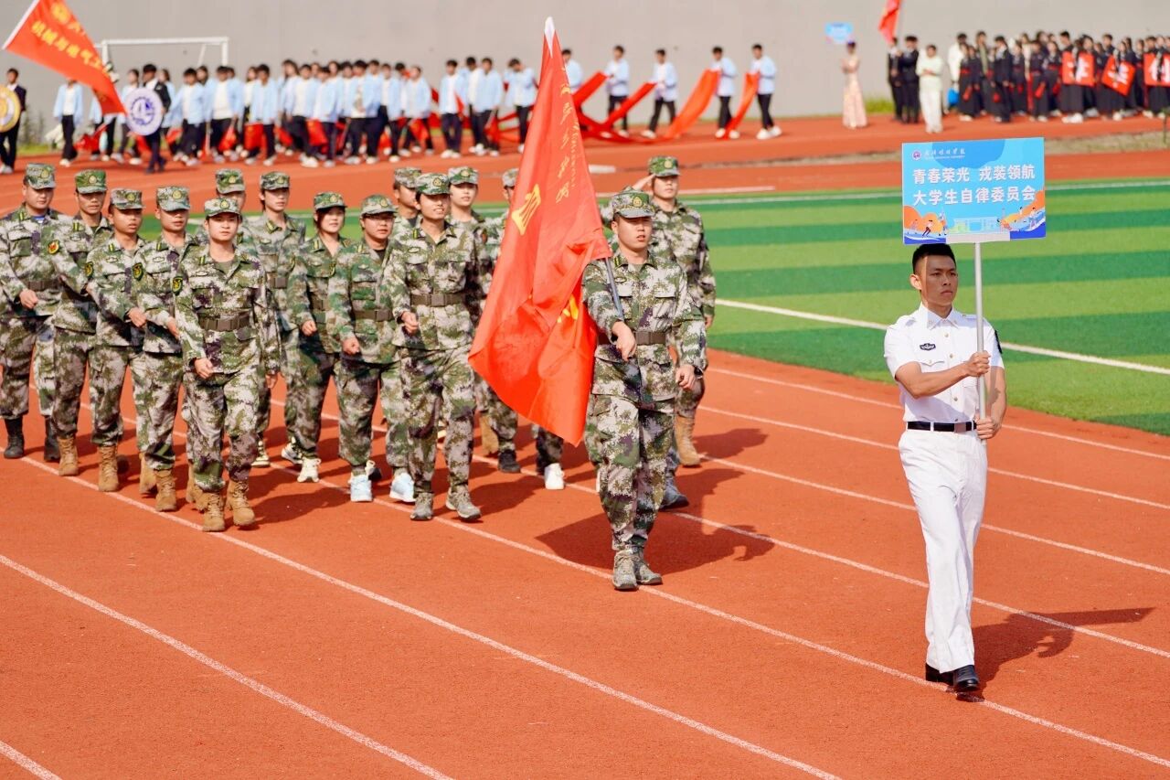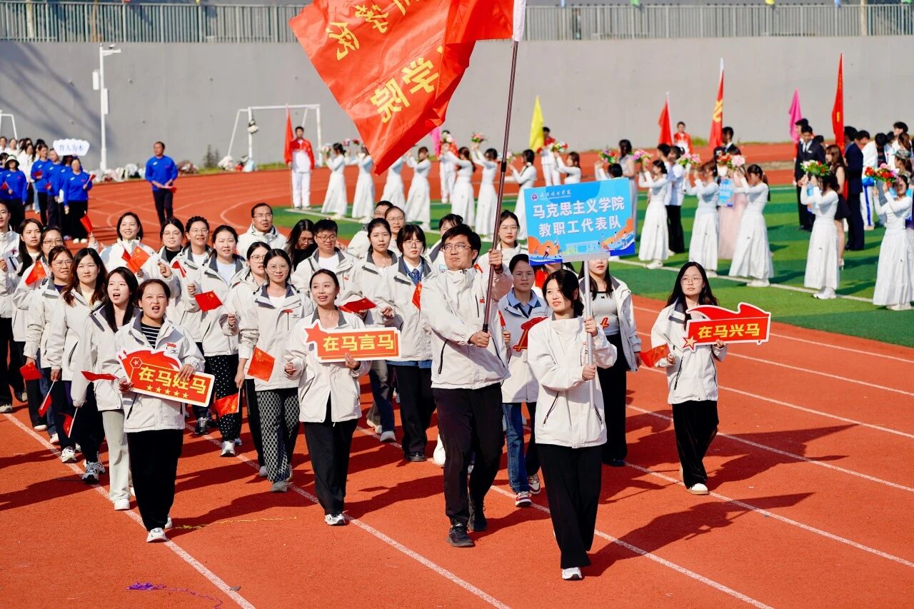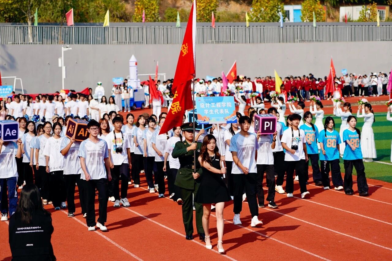 随着激昂澎湃的《运动员进行曲》响起,各支队伍依次入场。国旗护卫队英姿飒爽,校旗方阵步伐坚定。五彩斑斓的彩旗与鲜花方阵,如流动的调色盘,绘出晴川最美的秋日画卷。大学生自律委员会的同学们,以退役不褪色的军人风范,成为一道亮丽的风景线。各学院学生方阵更是“八仙过海,各显神通”,教职工方阵也一改平日的严肃,踏着轻快的步伐,向同学们挥手致意,引来阵阵欢呼。