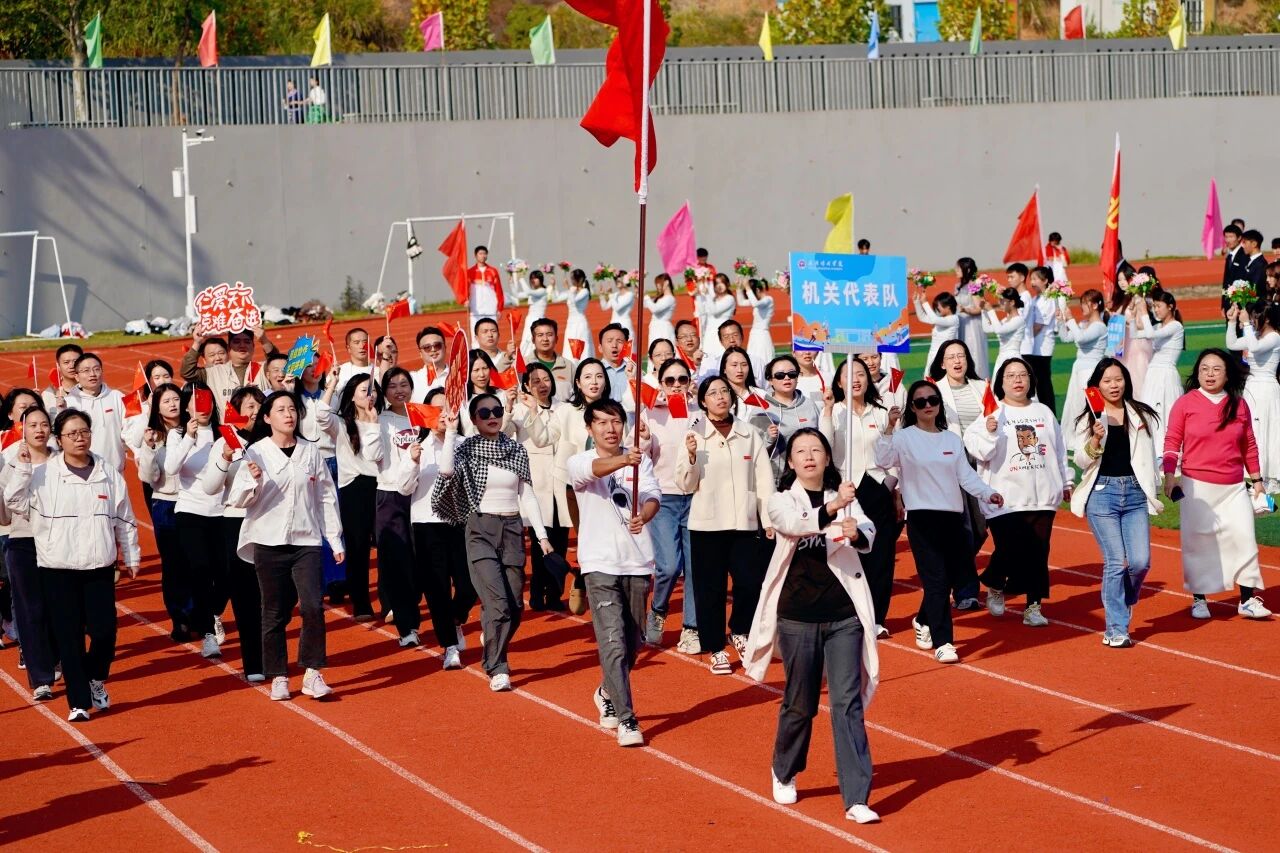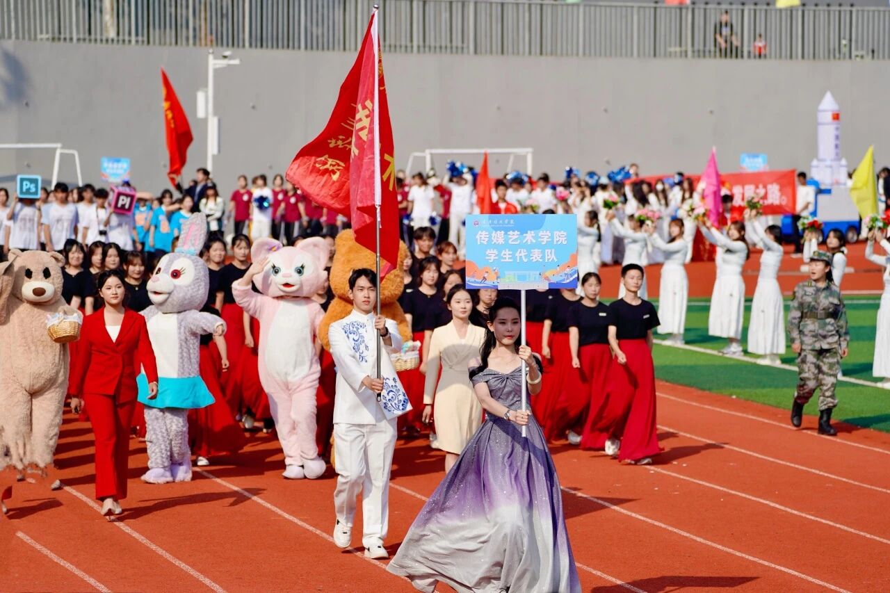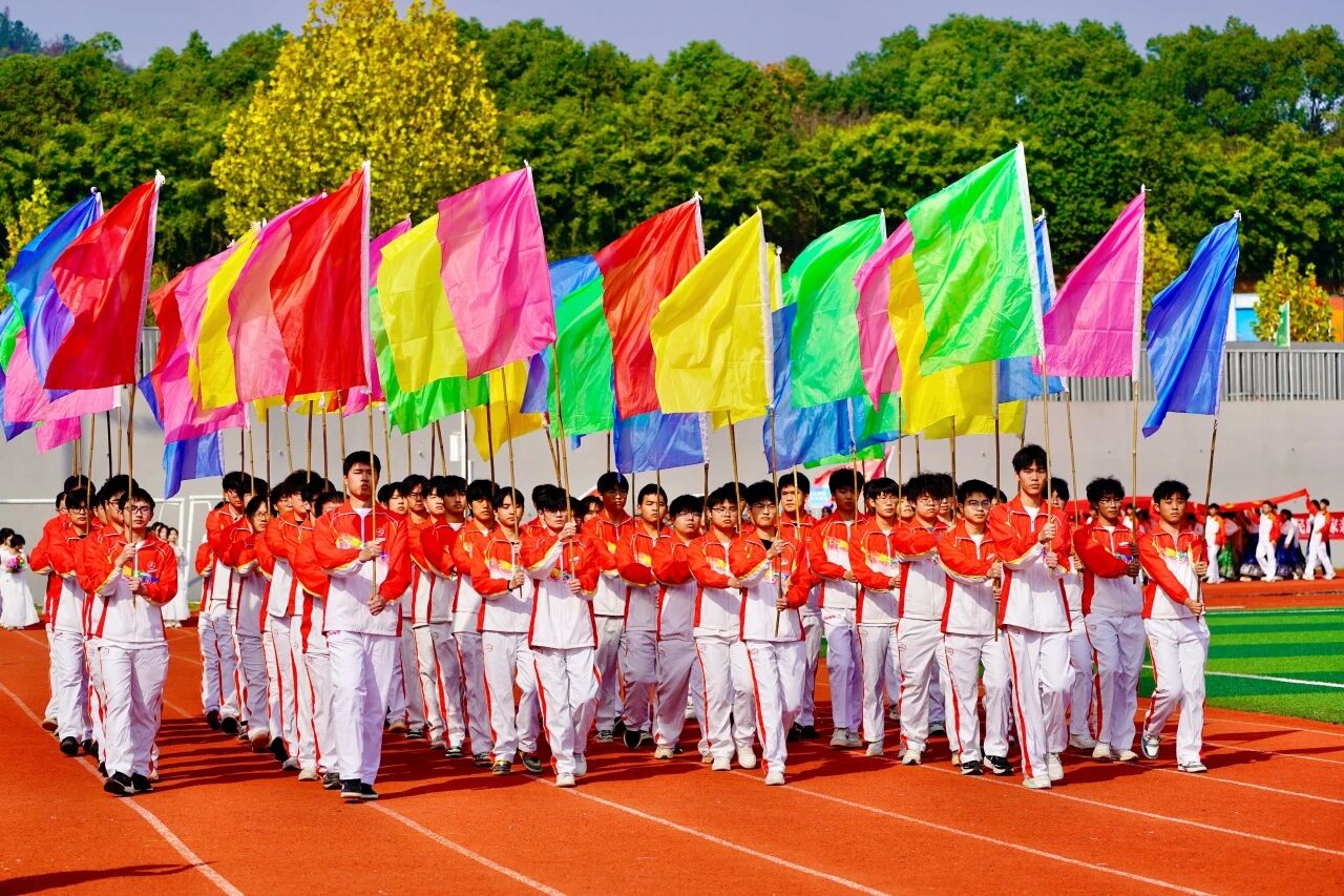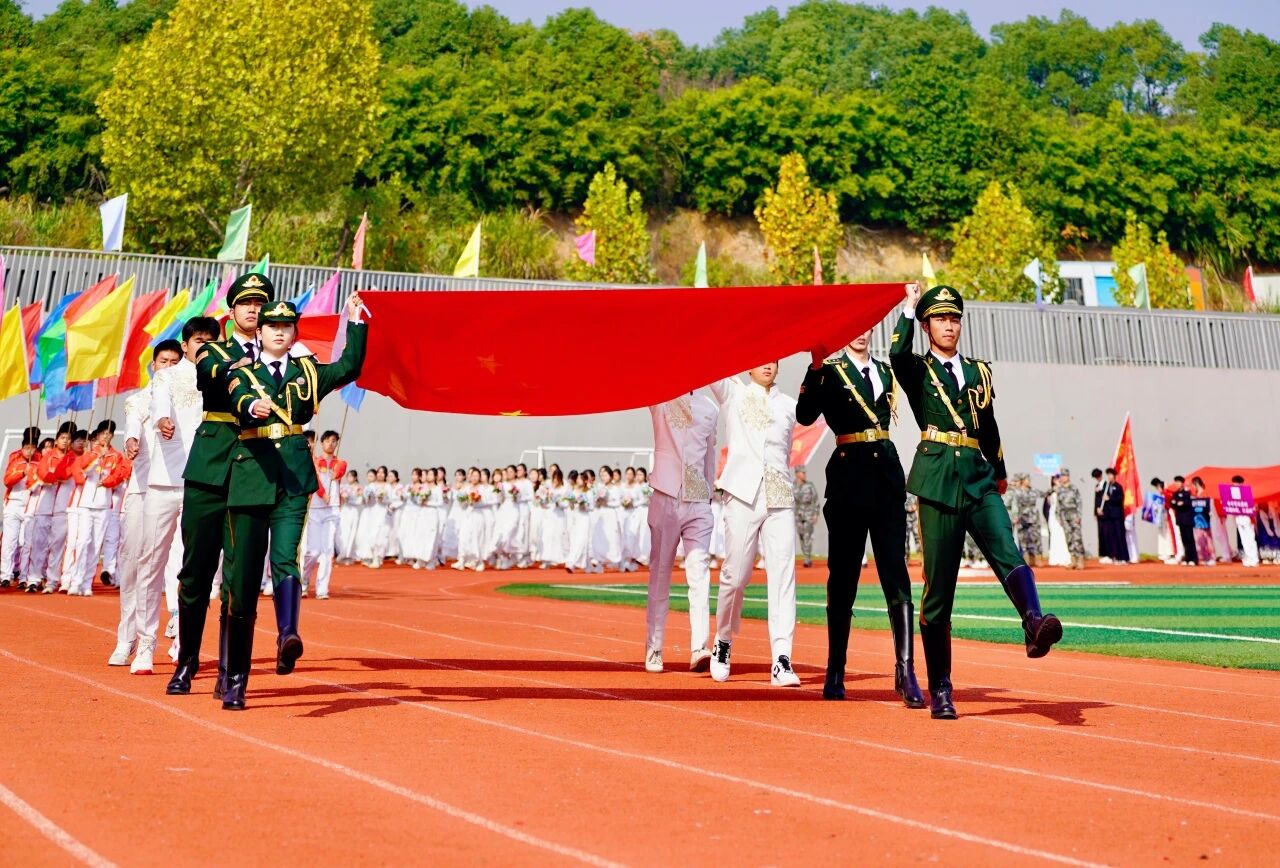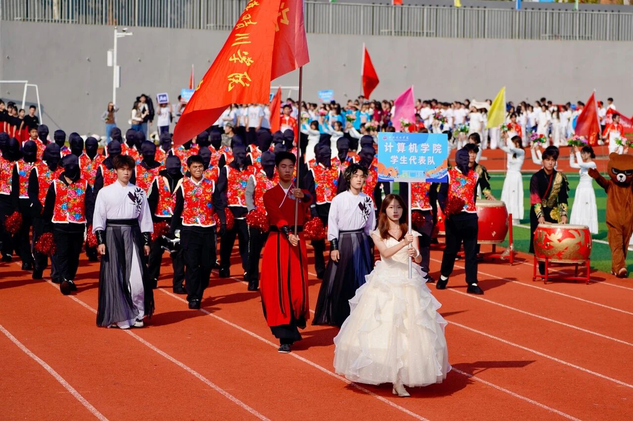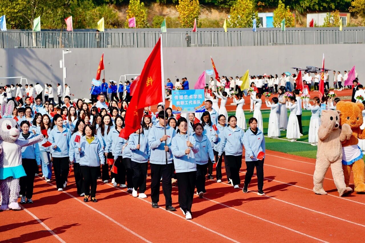 随着激昂澎湃的《运动员进行曲》响起,各支队伍依次入场。国旗护卫队英姿飒爽,校旗方阵步伐坚定。五彩斑斓的彩旗与鲜花方阵,如流动的调色盘,绘出晴川最美的秋日画卷。大学生自律委员会的同学们,以退役不褪色的军人风范,成为一道亮丽的风景线。各学院学生方阵更是“八仙过海,各显神通”,教职工方阵也一改平日的严肃,踏着轻快的步伐,向同学们挥手致意,引来阵阵欢呼。